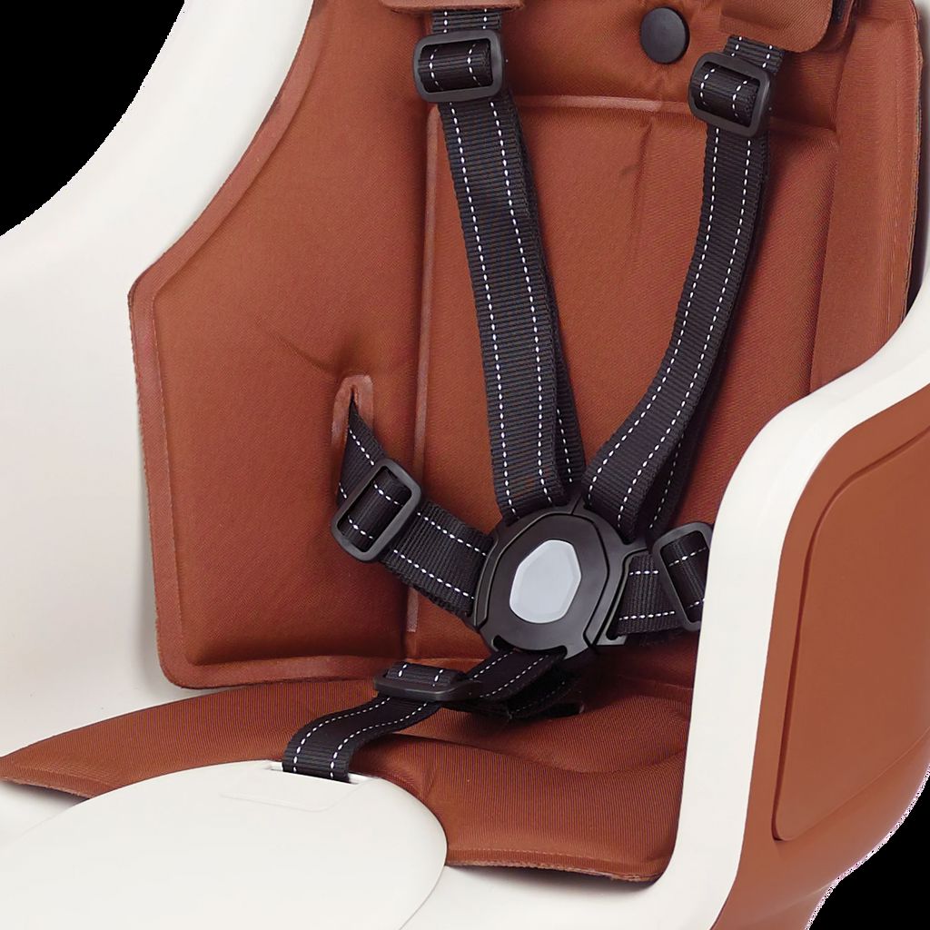 Ασφαλές Υποπόδιο: Το σύστημα υποπόδιο με ρυθμιζόμενο ύψος επιτρέπει την ασφαλή τοποθέτηση των ποδιών των παιδιών. Τα σωστά στηριζόμενα πόδια δεν τραυματίζονται ούτε έρχονται σε επαφή με τους τροχούς ενός ποδηλάτου που κινείται με μεγάλη ταχύτητα. Ζώνη 5 σημείων: Το κάθισμα είναι εξοπλισμένο με ζώνη 5 σημείων που αυξάνει σημαντικά την ασφάλεια και εμποδίζει το παιδί να γλιστρήσει κατά λάθος από το κάθισμα.