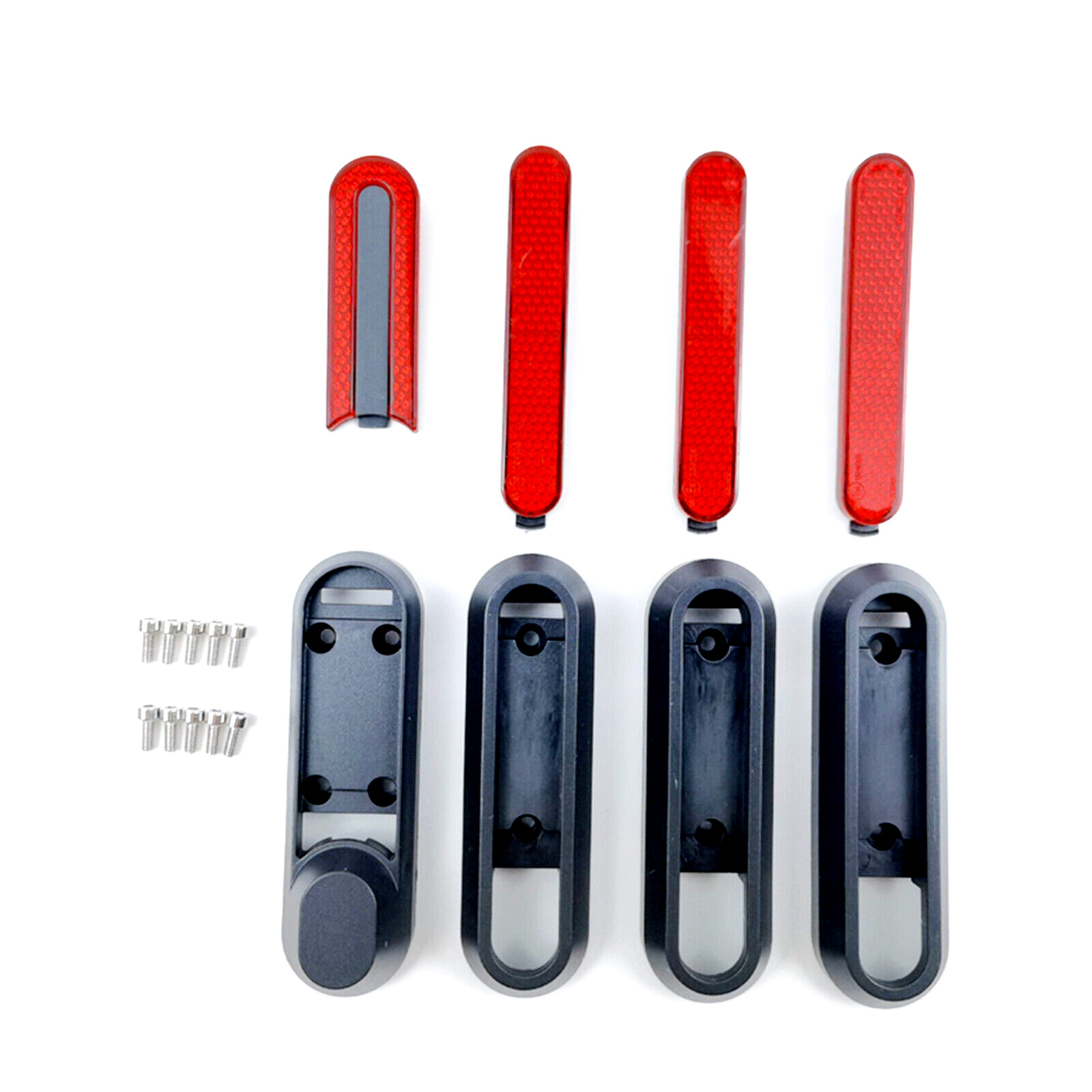eWHEEL Σετ καπακια new model 4 τεμαχια που καλύπτει τις βίδες για τους μπροστινούς και πίσω τροχούς. Περιλαμβάνει ανακλαστικά κοκκαλινα σε κοκκινο χρωμα και βιδες στερεωση.καταλληλο για ολα τα μοντελα xiaomi