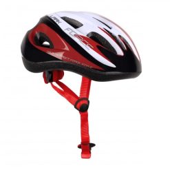 Lark κράνος παιδικό της Force σε χρώμα μαύρο – κόκκινο – άσπρο με 14 αεραγωγούς για σωστό εξαερισμό. Με διχτάκι για τα έντομα, ανακλαστικές ιδιότητες, μαξιλαράκι για το σαγόνι και ρυθμιστή αυξομείωσης της περιφέρειας (δαχτυλίδι).