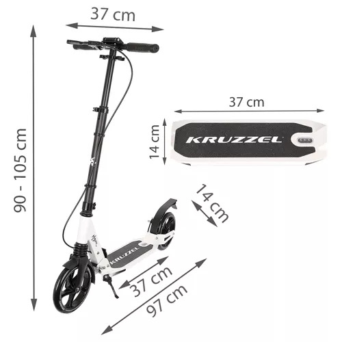 ΜΕΓΑΛΟΙ ΤΡΟΧΟΙ – χάρη στο γεγονός ότι το σκούτερ έχει μεγάλους και ελαστικούς τροχούς, η οδήγηση του είναι άνετη. Η μεγάλη διάμετρος των τροχών διευκολύνει την οδήγηση και επίσης αναπτύσσει γρήγορα υψηλή ταχύτητα. Το όχημα είναι εξαιρετικά ανθεκτικό, έχει μέγιστο εύρος φορτίου από 20 έως 100 κιλά, χάρη στο οποίο είναι κατάλληλο για παιδιά, νέους και ηλικιωμένους.