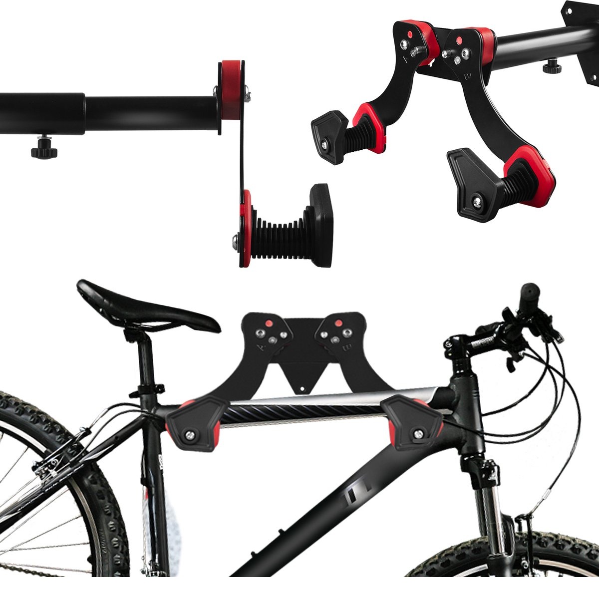 Προσαρμόζοντας την απόσταση από τον τοίχο, μπορείτε να προσαρμόσετε το μήκος της λαβής ανάλογα με τις ανάγκες σας. Επιπλέον, η απόσταση μεταξύ των βραχιόνων μπορεί να ρυθμιστεί, έτσι ώστε η βάση να είναι κατάλληλη για διαφορετικούς τύπους ποδηλάτων. Η συναρμολόγηση γίνεται γρήγορα και εύκολα και η συσκευασία περιέχει όλα τα απαραίτητα εξαρτήματα στερέωσης.