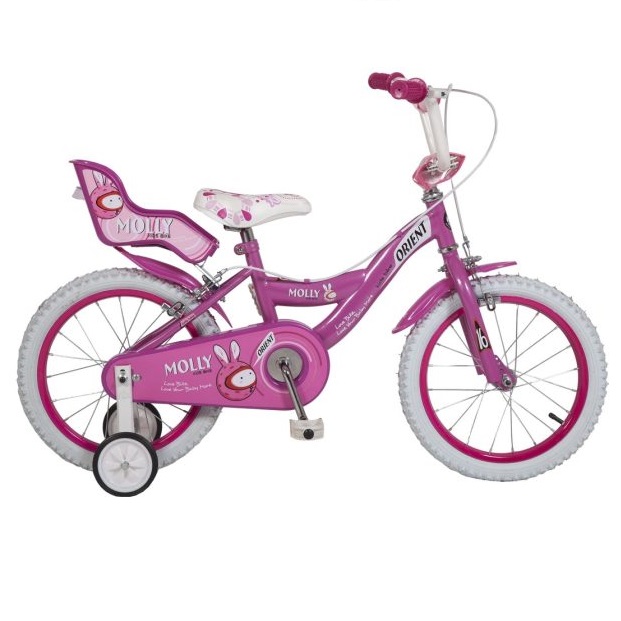 Ένα παιδικό ποδήλατο με την υπογραφή της ελληνικής εταιρείας ORIENT. Τροχοί 12” ιντσών, ολόσωμο προφυλακτήρα για την αλυσίδα, καρεκλάκι στο πίσω μέρος για τις αγαπήμενες κούκλες, φτερά και προστατευτικά μπαρετάκια στο τιμόνι. Ένα ολοκληρωμένο ποδήλατο με πολύ κομψό σχεδιασμό.