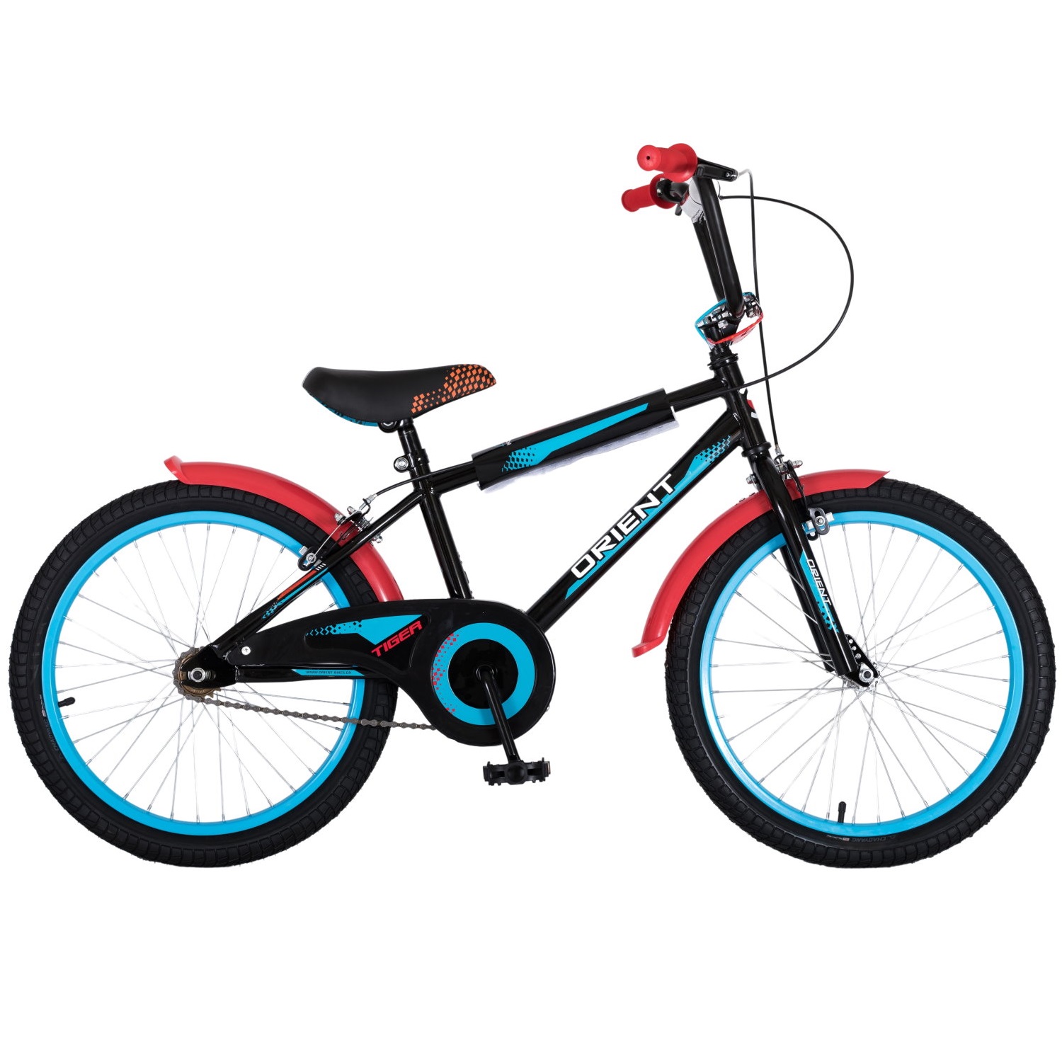 Ένα παιδικό ποδήλατο με την υπογραφή της ελληνικής εταιρείας ORIENT. Εξοπλισμένο με σκελετό Hi-Ten, φρένα v-brake για τέλειο φρενάρισμα, τροχοί 20” ιντσών αλουμινίου, ολόσωμο προφυλακτήρα για την αλυσίδα, φτερά και προστατευτικά μπαρετάκια για το τιμόνι και το σκελετό. Ένα ολοκληρωμένο ποδήλατο με πολύ κομψό σχεδιασμό.