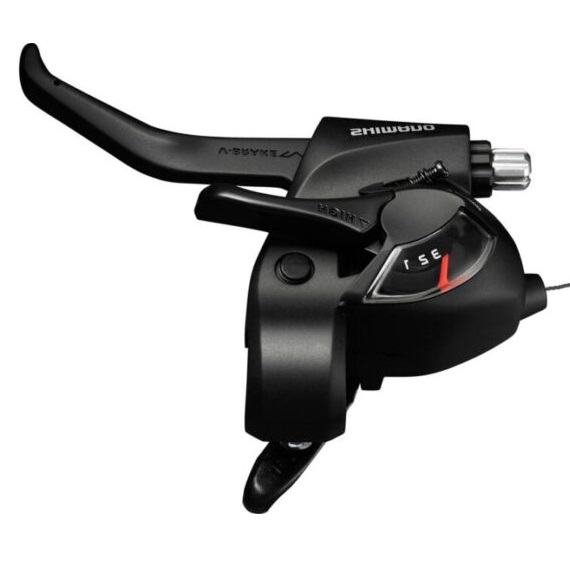 Λεβιεδομανέτα αριστερή ταχυτήτων Shimano ST-EF41 Shift – Brake Lever 3 Speed. Είναι συμβατή με μηχανικά δισκόφρενα, v-brake φρένα, 3x6sp, 3x7sp, 3x8sp συστήματα ταχυτήτων. Διατίθεται με συρματόσχοινο ταχυτήτων.